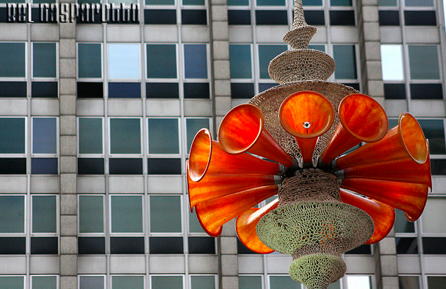 Étrange objet à l’allure d’une pieuvre, invisible, à la sonorité extrêmement puissante, délaissé sur les hauteurs de la ville.